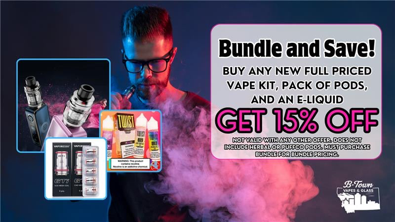 Save big by bundling your startup kit from top vape brands like Vaporesso, Smok, GeekVape, and more! Enjoy 15% off your entire bundle buying the kit, juice and coils at checkout!